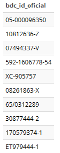 El formato de los datos es también variopinto. Por ejemplo, los identificadores oficiales: