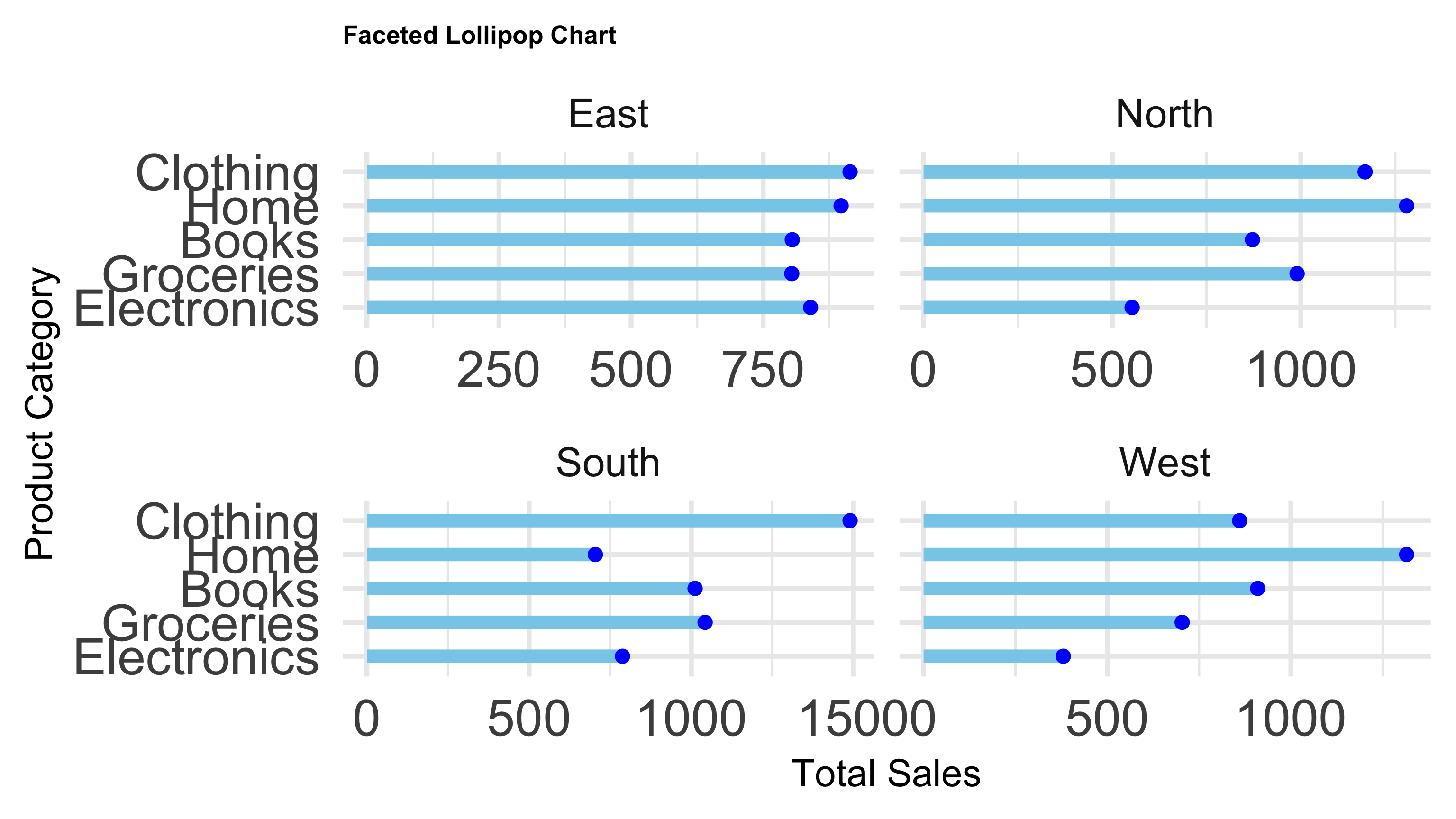 geom_segment(aes(x = 0, xend = Total_Sales, y = Product_Category, yend = Product_Category), color = "skyblue", size = 5) +
