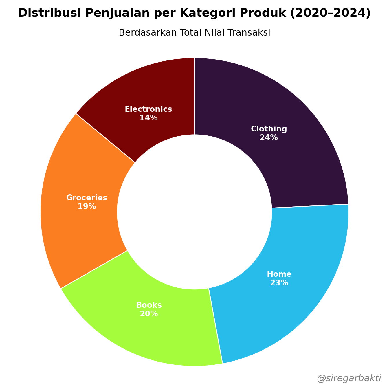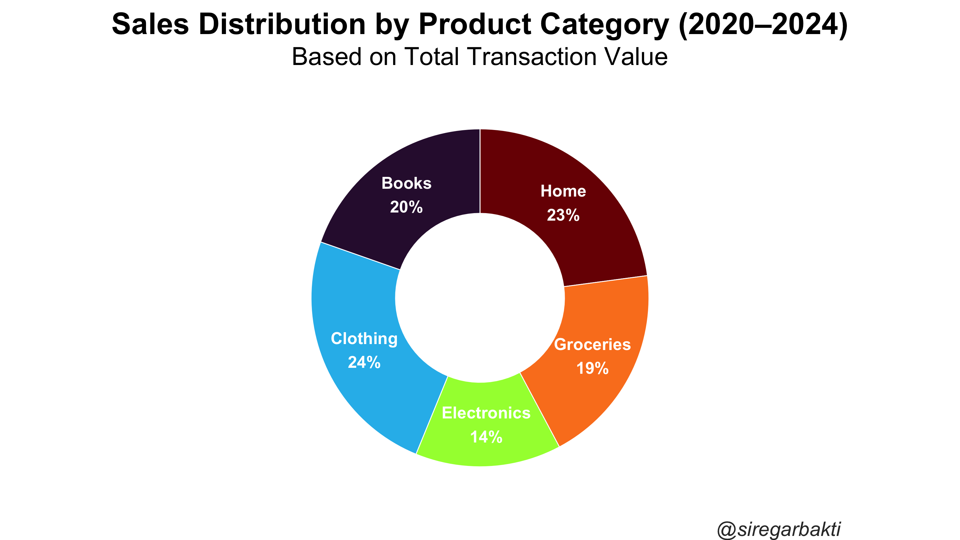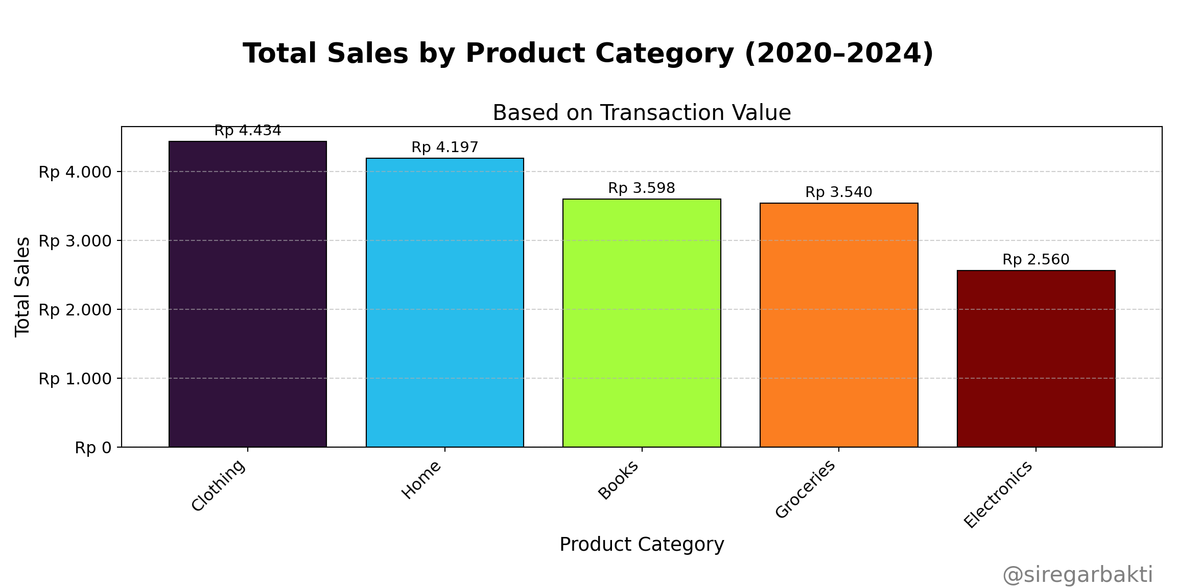 fig.suptitle('Total Sales by Product Category (2020–2024)',
