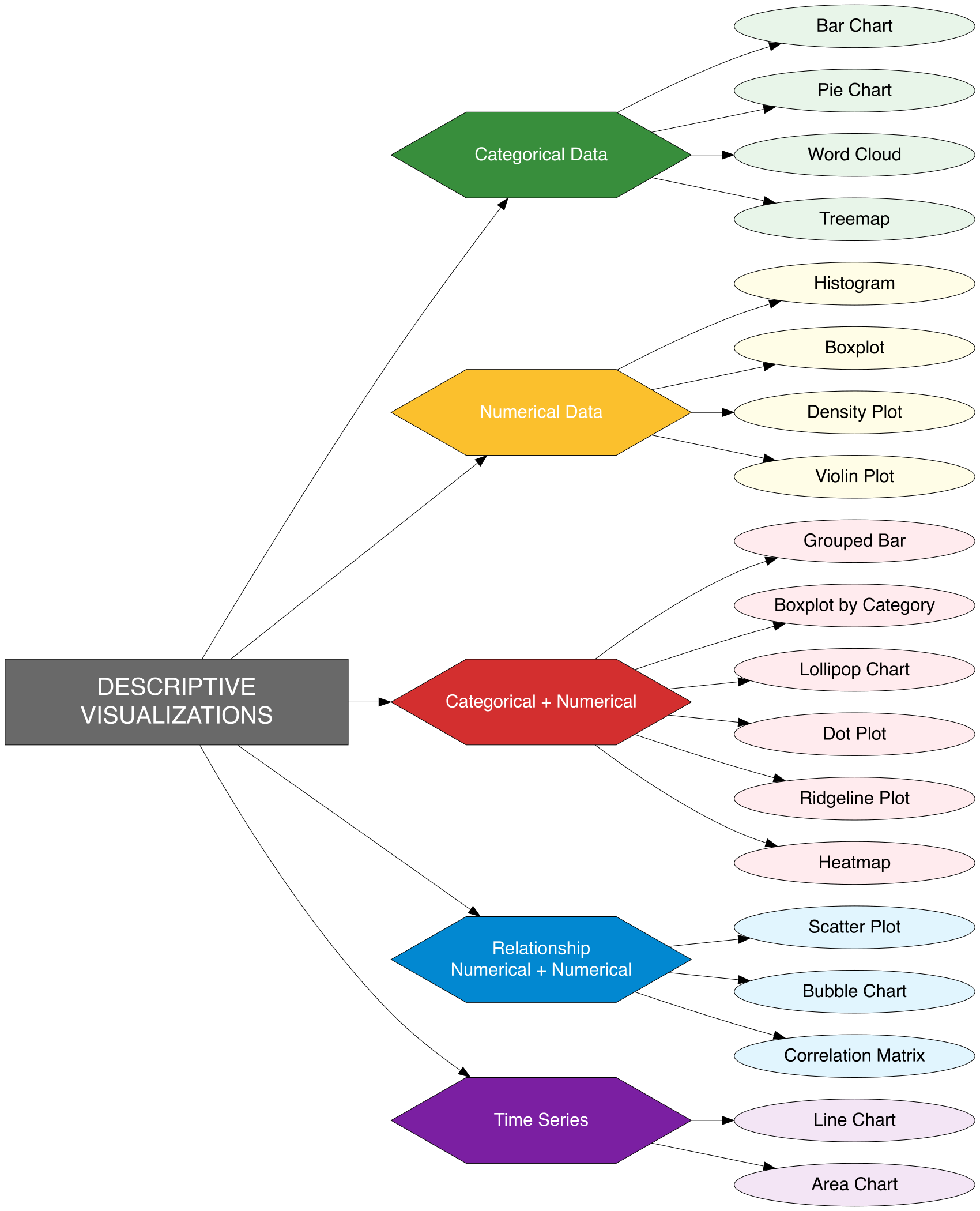 Descriptive visualizations are charts and plots employed in Exploratory Data Analysis to succinctly summarize and uncover essential patterns, relationships, and anomalies within data. They transform raw data into clear, interpretable visuals that enhance comprehension and support informed decision-making. These tools are crucial for examining distributions, correlations, comparisons, trends, and outliers, providing a fundamental basis for more advanced modeling and analysis.