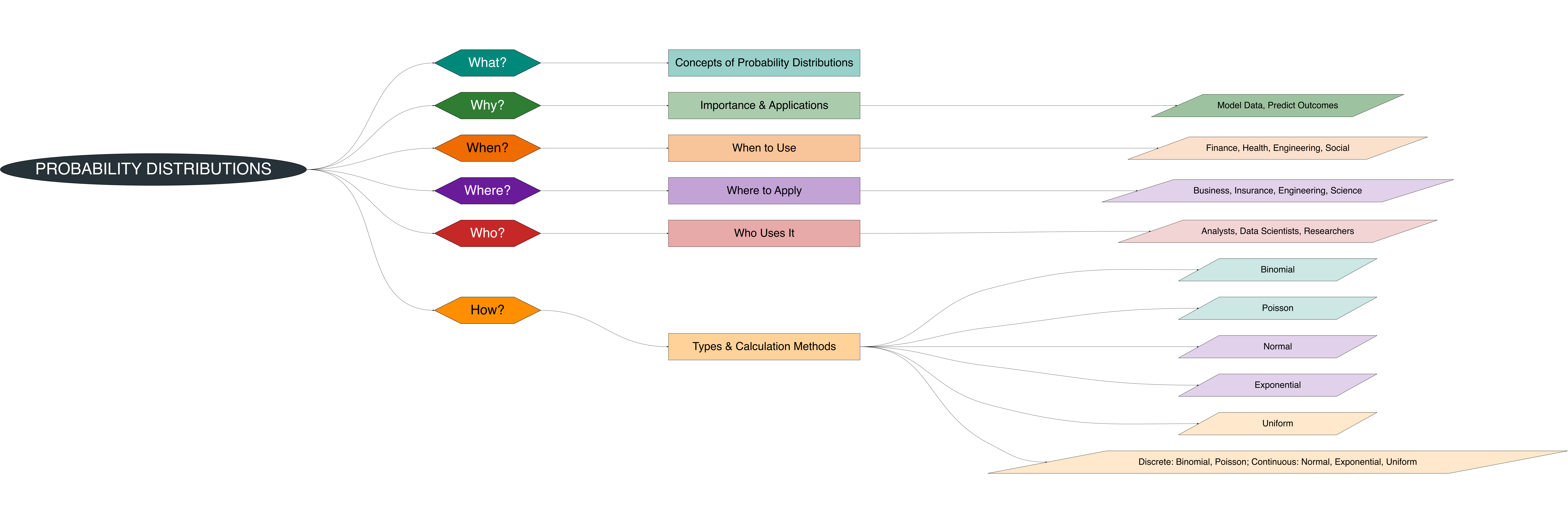 Probability distributions (see Figure 7.1) link closely to earlier topics, including Central Tendency and Statistical Dispersion. For instance, the mean of a probability distribution corresponds to a measure of central tendency, while the variance or standard deviation quantifies its dispersion. Graphical tools such as histograms, density plots, and cumulative distribution plots help visualize these characteristics, making it easier to understand the behavior of random variables [1]–[3].