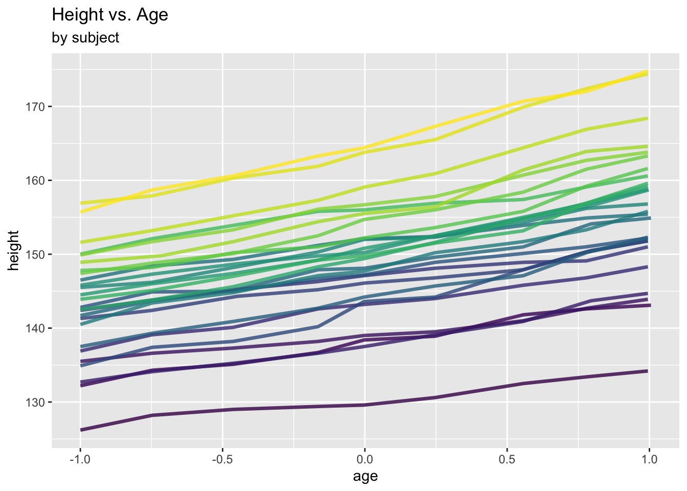 labs(title = "Height vs. Age", subtitle = "by subject") +
