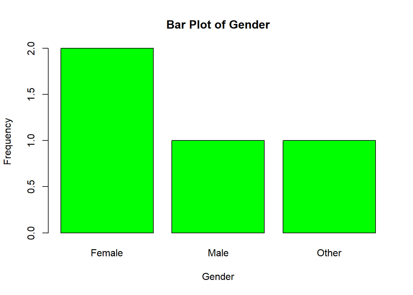 To create a bar plot, we will begin by asking R to generate a frequency table. We do this using the table