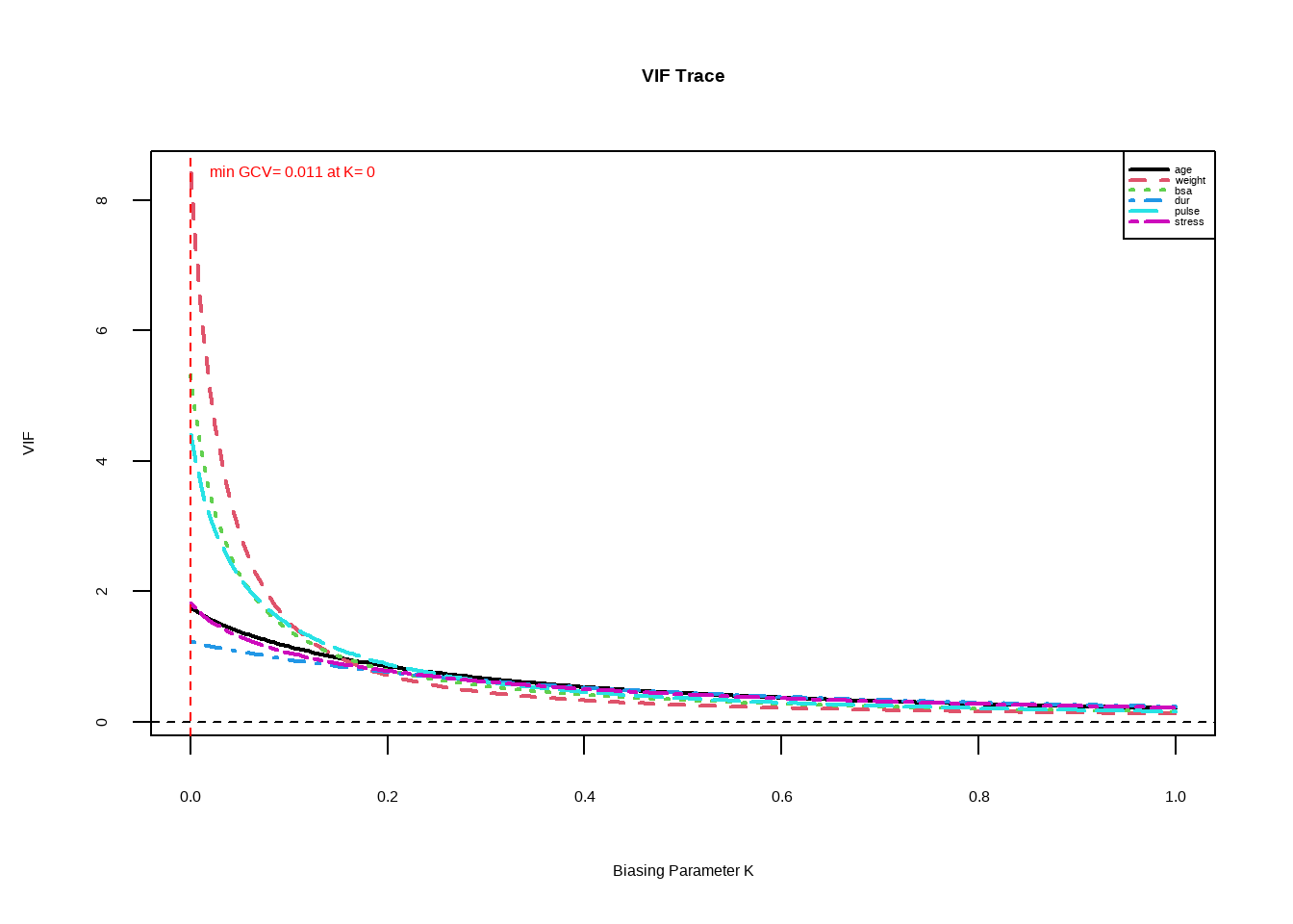 bp_ridge <- lmridge(bp~age+weight+bsa+dur+pulse+stress,
