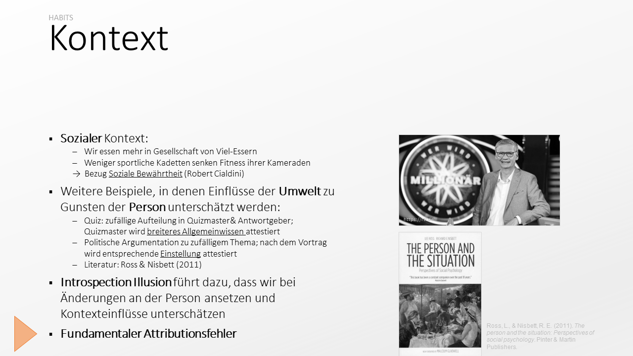 Wir sehen in all diesen Beispielen den fundamentalen Attributionsfehler am Werk. Aber auch die Introspection Illusion führt dazu, dass wir bei Änderungen an der Person ansetzen und Kontexteinflüsse unterschätzen.