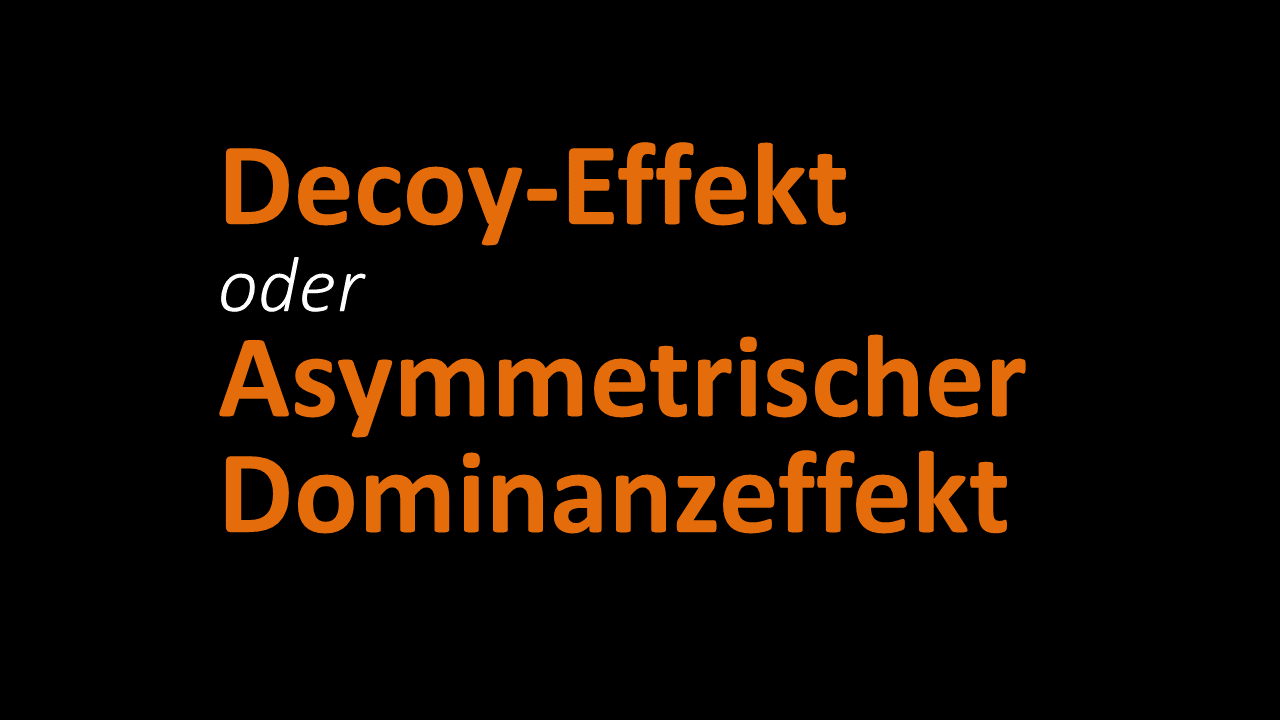 Um ein Gefühl für die Wirkung von Biases auf das Entscheidungsverhalten zu bekommen, wollen wir an dieser Stelle zumindest einen Bias besprechen: Wir wählen dazu den Decoy Effect – oder auch bezeichnet als Asymmetrischer Dominanzeffekt.