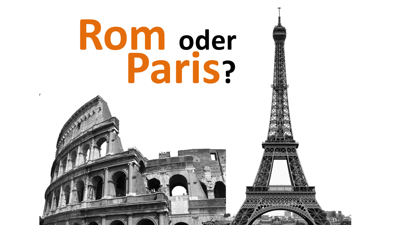 Versetzen Sie sich in die folgende Situation: Sie haben eine Reise gewonnen. Sie können wählen: Entweder fliegen Sie nach Rom oder nach Paris. Alle Kosten werden übernommen. Was wählen Sie? Vielleicht haben Sie schnell eine Antwort parat; aber machen Sie es sich nicht zu leicht. Versuchen Sie die Wahl ernst zu nehmen. Welche Attribute einer solchen Wahl sind relevant? Wie ist für den relevanten Zeitraum das Wetter? Wie sind die politischen Umstände? Gibt es bei der Anreise evtl. etwas zu berücksichtigen, das für oder gegen Rom oder Paris spricht? Mit wem fliegen Sie? Wohin möchte diese Person lieber? Es gibt eine Menge Dinge, an die wir bei einer solchen Wahl denken würden. Die Wahl Rom oder Paris ist vermutlich nicht einfach.