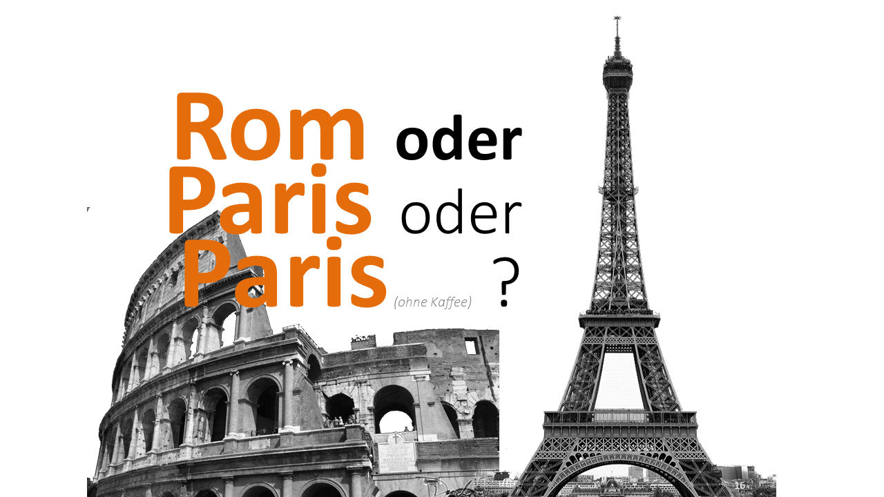 Wenn die Option Paris ohne Kaffee nicht existiert, müssen wir uns zwischen Rom und Paris entscheiden und die anstrengende Abwägung vornehmen. Das Ergebnis ist nun ein anderes!