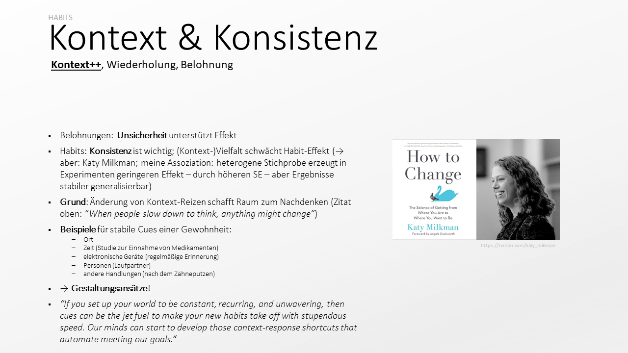 Abschließend ein Zitat von Wendy Wood zum Thema Kontext-Stabilität: