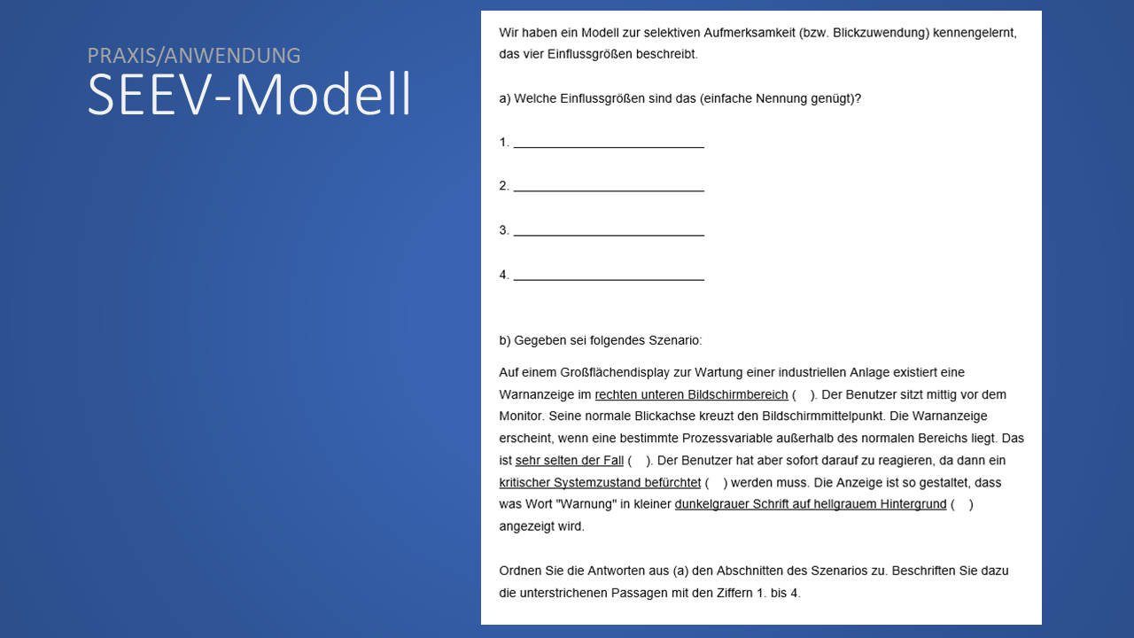 Aufgabe: Beispiel-Anwendung des SEEV-Modells