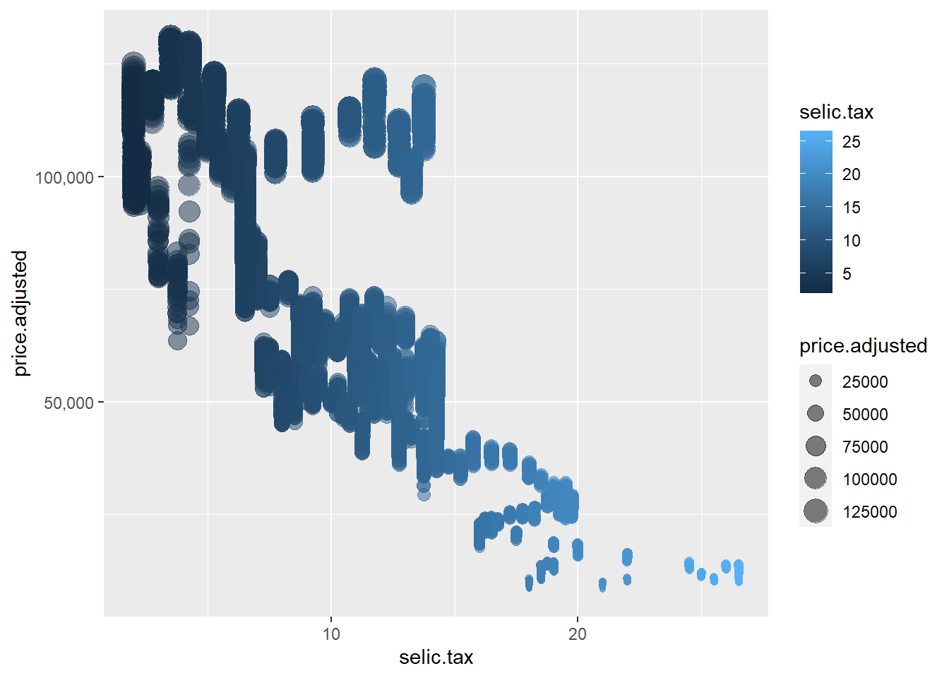 ## data: price.adjusted and selic.tax