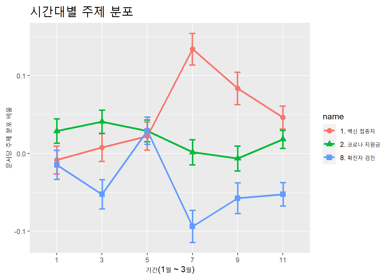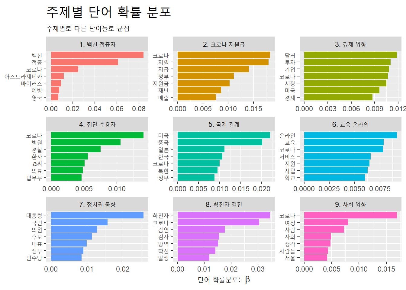 ## $ name <chr> "1. 백신 접종자", "2. 코로나 지원금", "3. 경제 영향", "4. 집단 수용자", "5. 국...