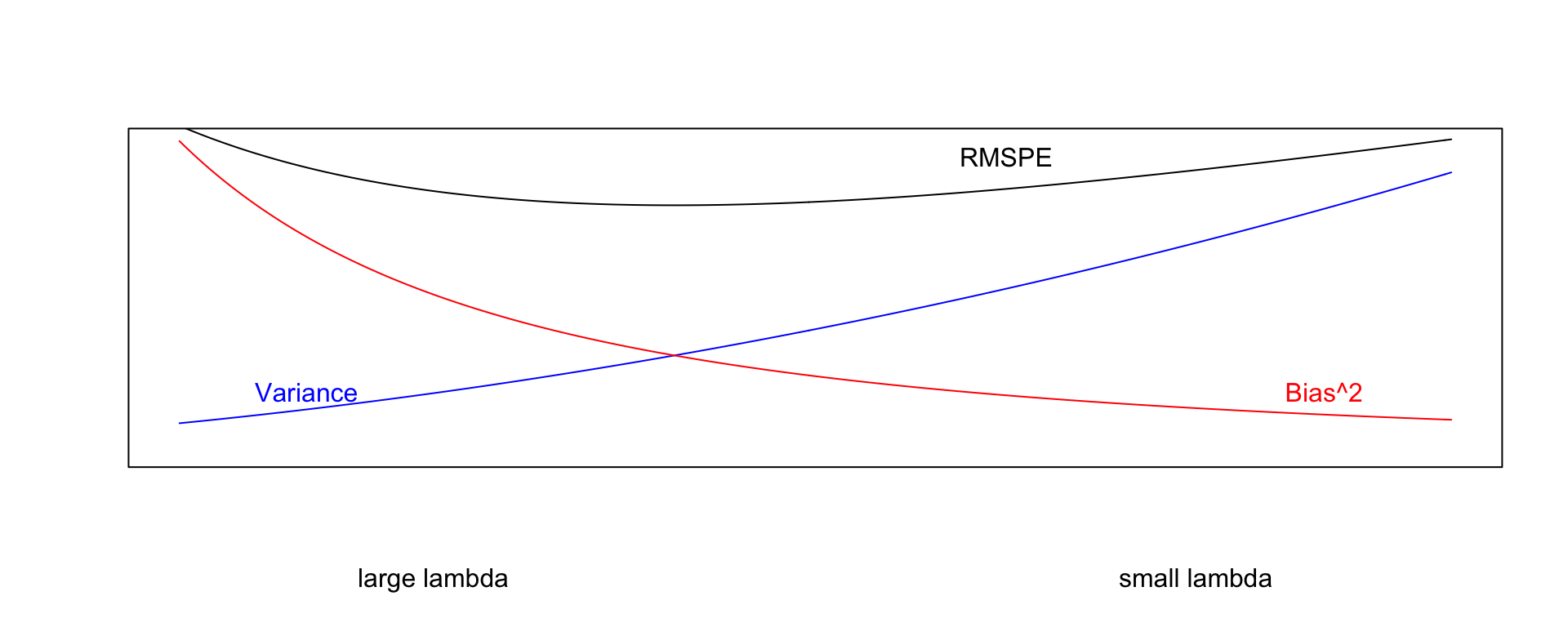 The value of \(\lambda\) is predetermined by the user. The larger the value of \(\lambda\), the more heavily large \(b_j's\) are penalized. A value of \(\lambda=0\) corresponds to ordinary least-squares.