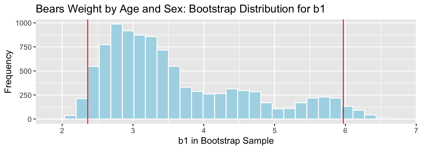 3.7.8 Bootstrap SE CI for \(b_1\) in Bears Model