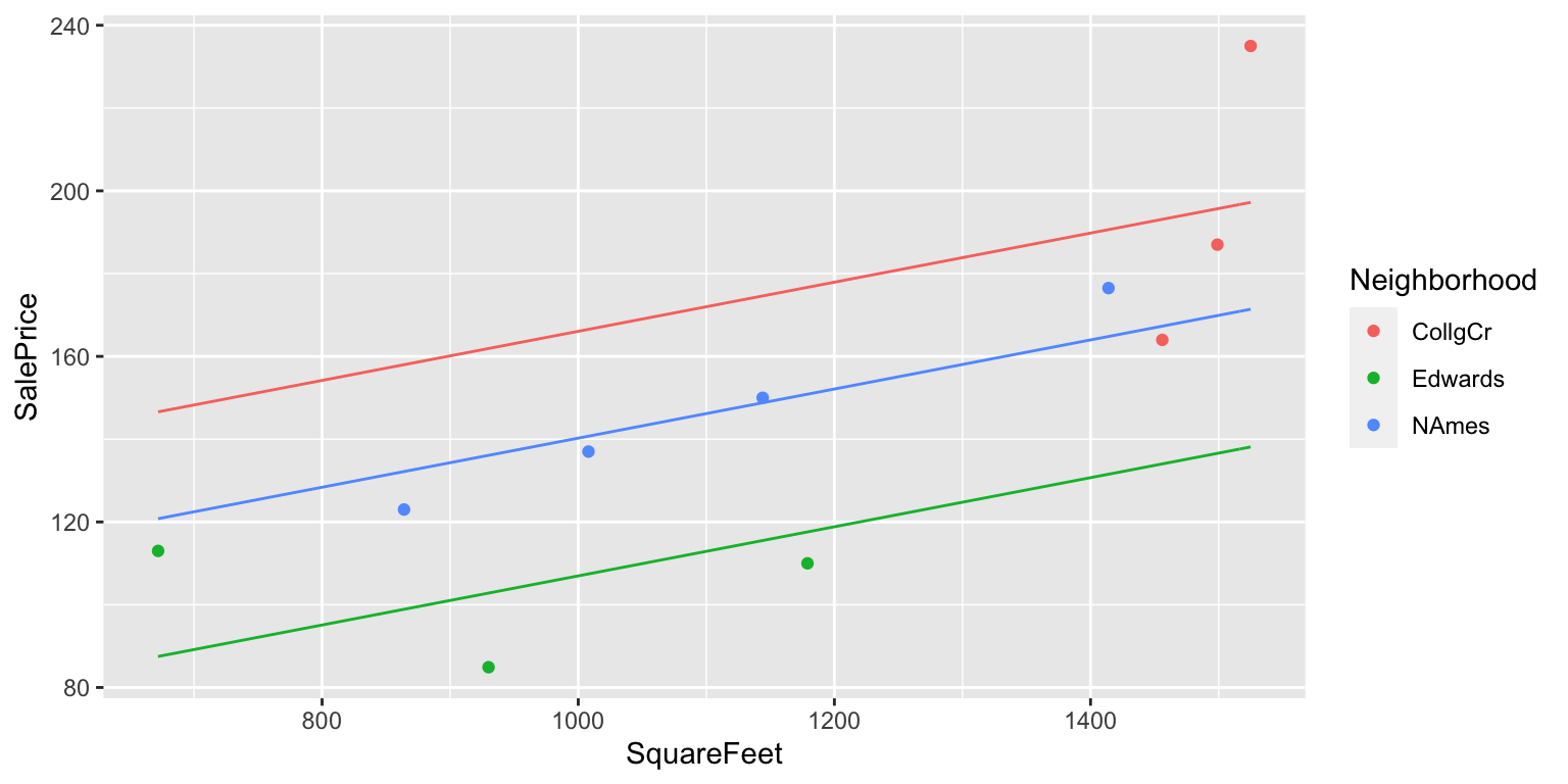 \(\widehat{\text{Price}}= b_0+ b_1 \times\text{I}_{\text{Edwards}} +b_2 \times\text{I}_{\text{NAmes}}\)
