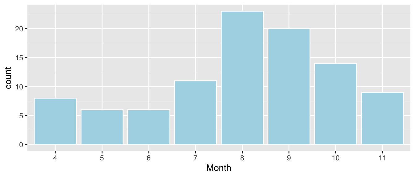 - For categorical explanatory variables, R treats the category that comes first alphabetically (in this case CCreek), as a baseline. The intercept gives the prediction for this category.