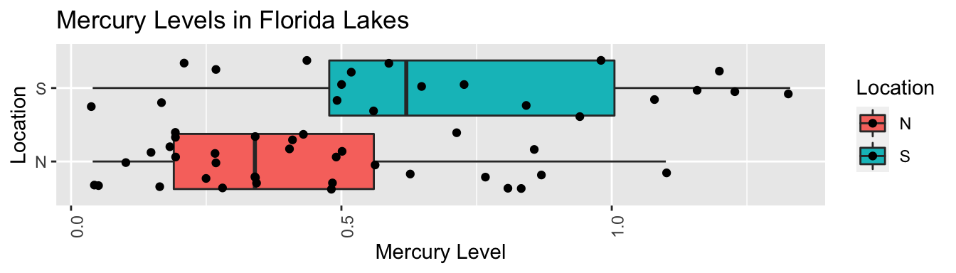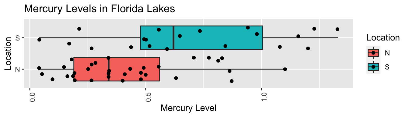xlab("Location") + ylab("Mercury Level") + theme(axis.text.x = element_text(angle = 90)) + coord_flip()