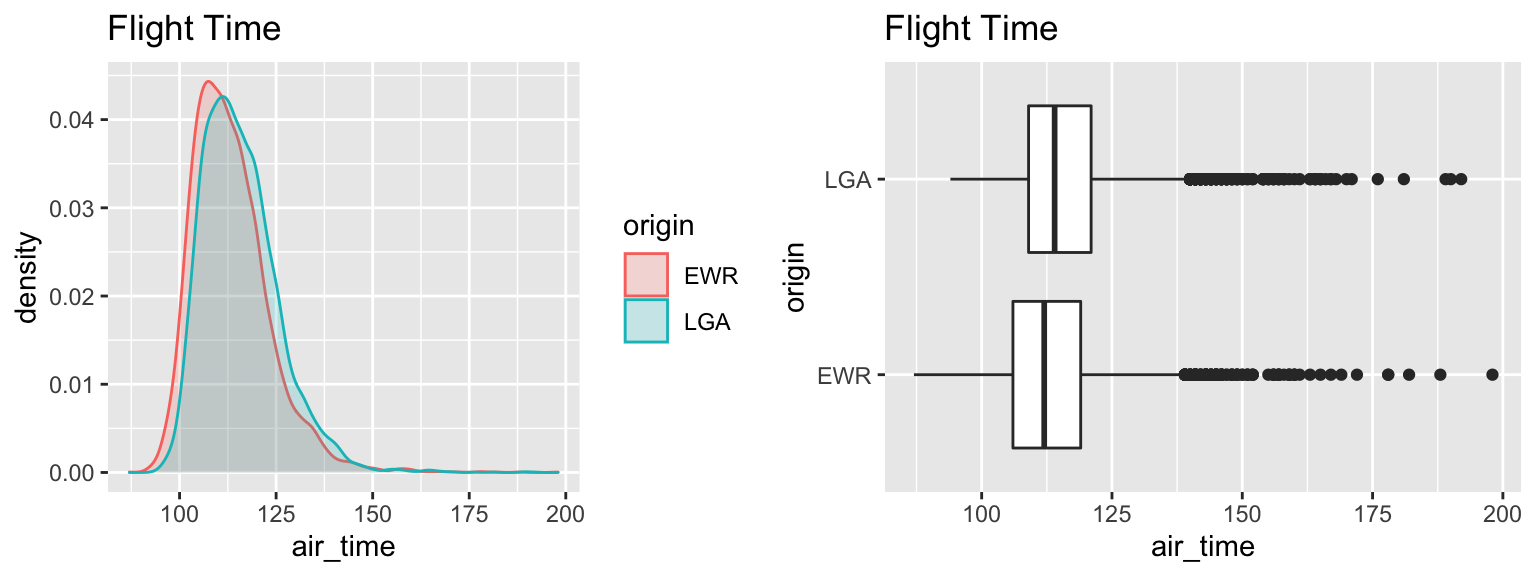 ## lm(formula = air_time ~ origin, data = Flights_NY_CHI)
