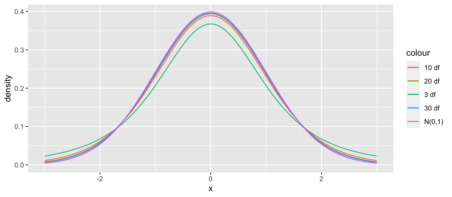 Recall that standard error tells us about the variability in the distribution of a statistic between different samples size \(n\).