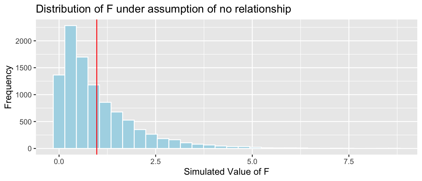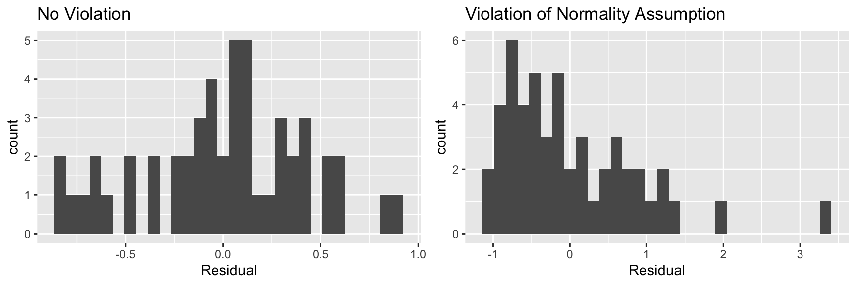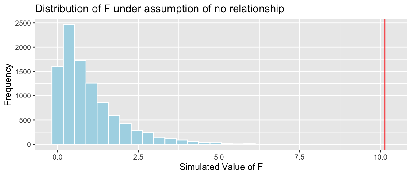 We know that these held true in the ice cream example, because we generated the data in a way that was consistent with these. In practice, we will have only the data, without knowing the exact mechanism that produced it. We should only rely on the t-distribution based p-values and confidence intervals in the R output if these appear to be reasonable assumptions.
