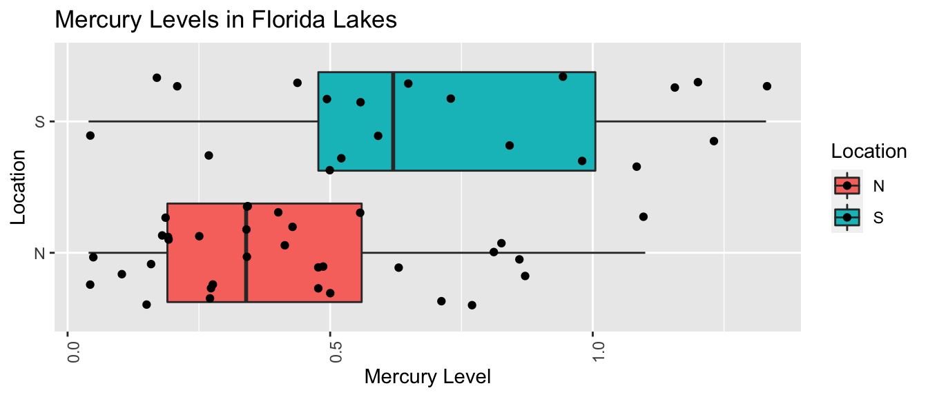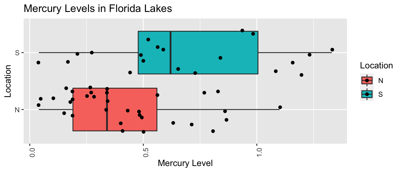 ## lm(formula = AvgMercury ~ Location, data = FloridaLakes)