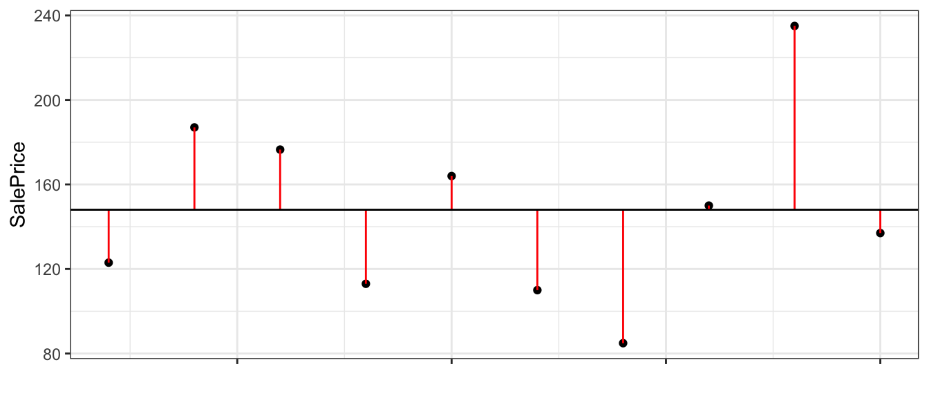 - If we have the prices of \(n\) houses, \(y_i, y_2, \ldots, y_n\), and want to predict the price of a new house, we use the model: