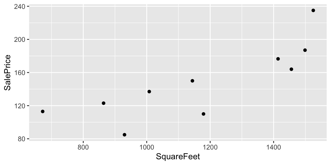 We’ll work with a set of 10 houses sold in Ames, IA between 2006 and 2010.