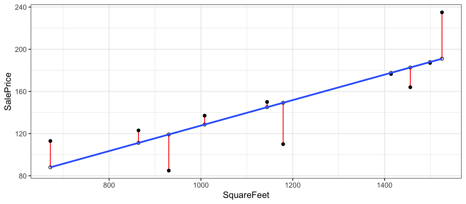 - The difference between the true and predicted values (\(y_i - \hat{y}_i\)) is called the \(ith\) residual.