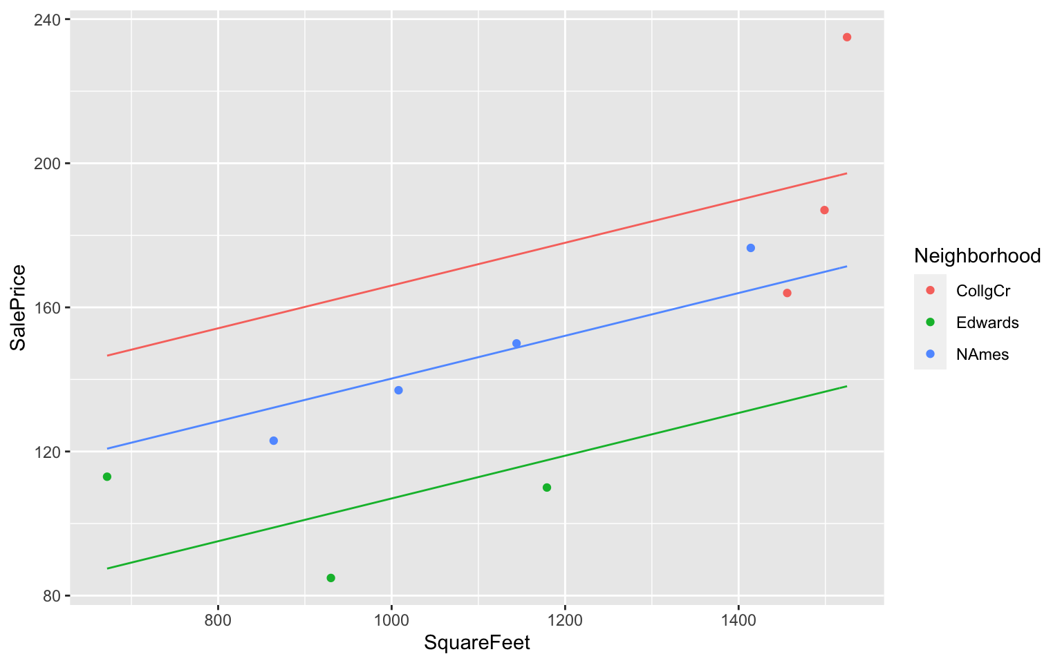 \(\widehat{\text{Price}}= b_0+ b_1 \times\text{I}_{\text{Edwards}} +b_2 \times\text{I}_{\text{NAmes}}\)