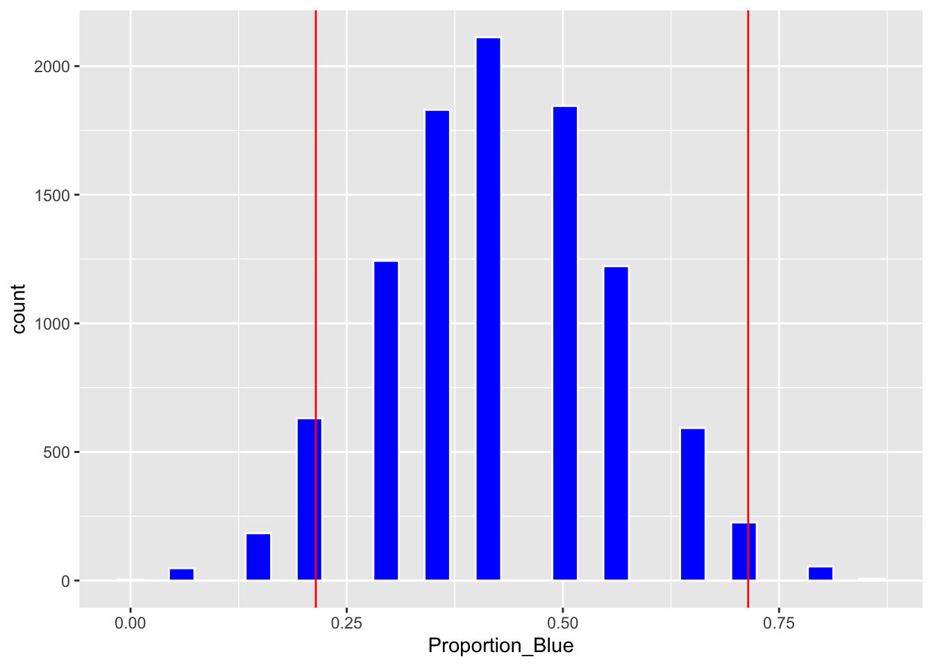 Boot_Dist_Plot + geom_vline(xintercept = c(Estimate - 2*SE, Estimate + 2*SE), color="red")3.2.4 M&M Proportions