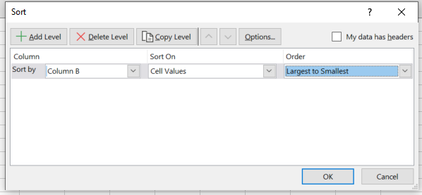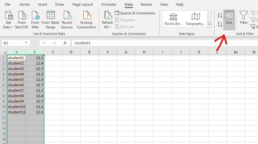 zet je meetwaarden onder elkaar en sorteer de data met Excel van groot naar klein.