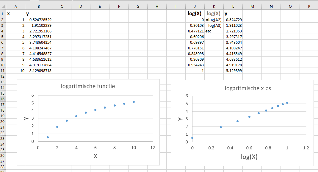 =login een cel en de verschillende log functies verschijnen. Kies de juiste en vergeet het –teken niet toe te voegen!
