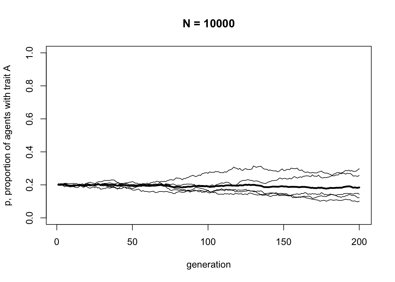Furthermore, generating expectations about cultural change under simple assumptions like random cultural drift can be useful for detecting non-random patterns like selection. If we don’t have a baseline, we won’t know selection or other directional processes when we see them.