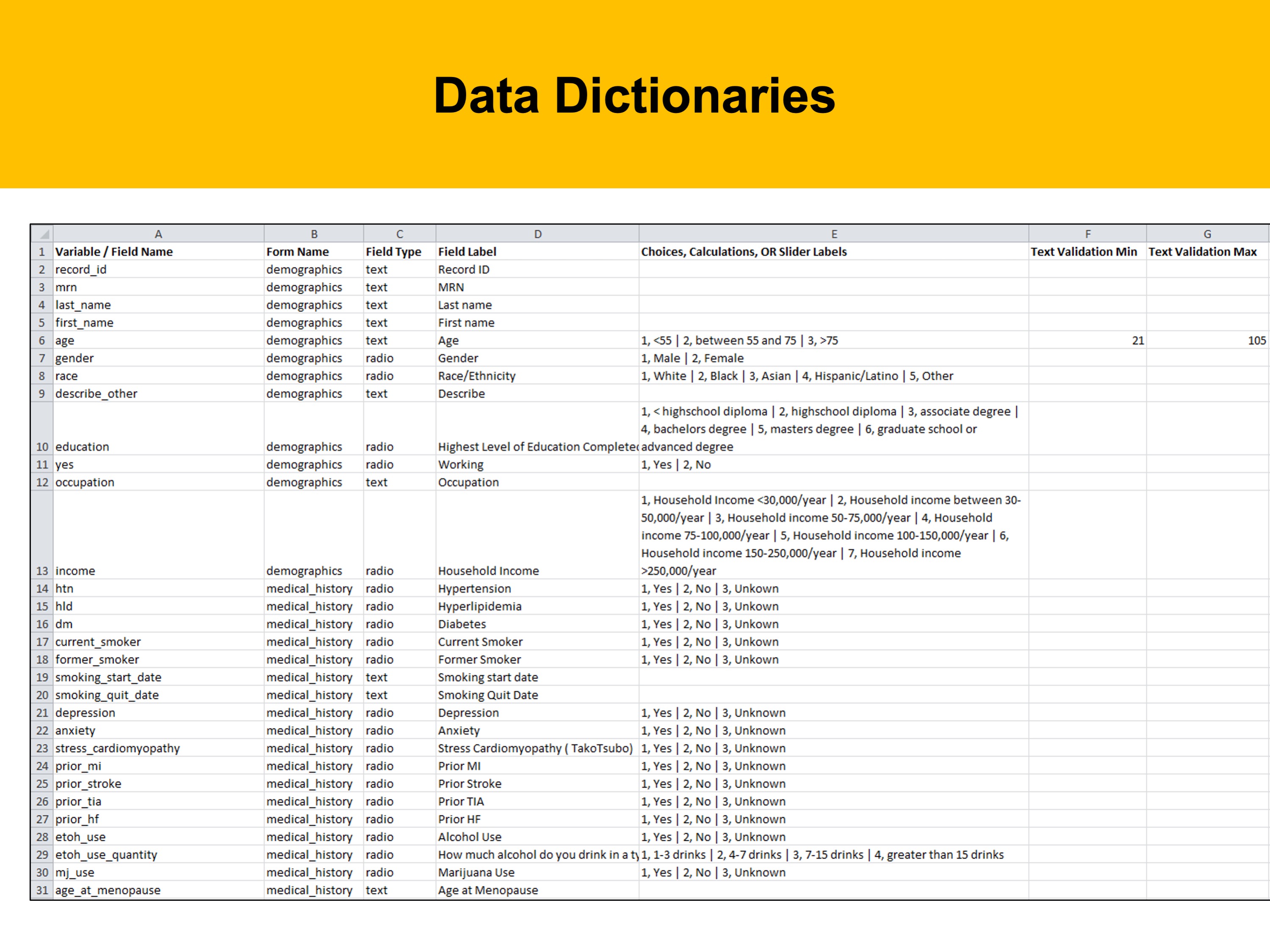 A theme we will come back to time and again is “documentation.” Good data management requires good documentation. A good practice is to document your variables in a data dictionary.