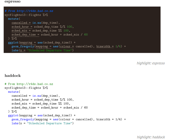 Ejemplo: se puede ocupar el estilo espresso en el formato gitbook en la sección del YAML: