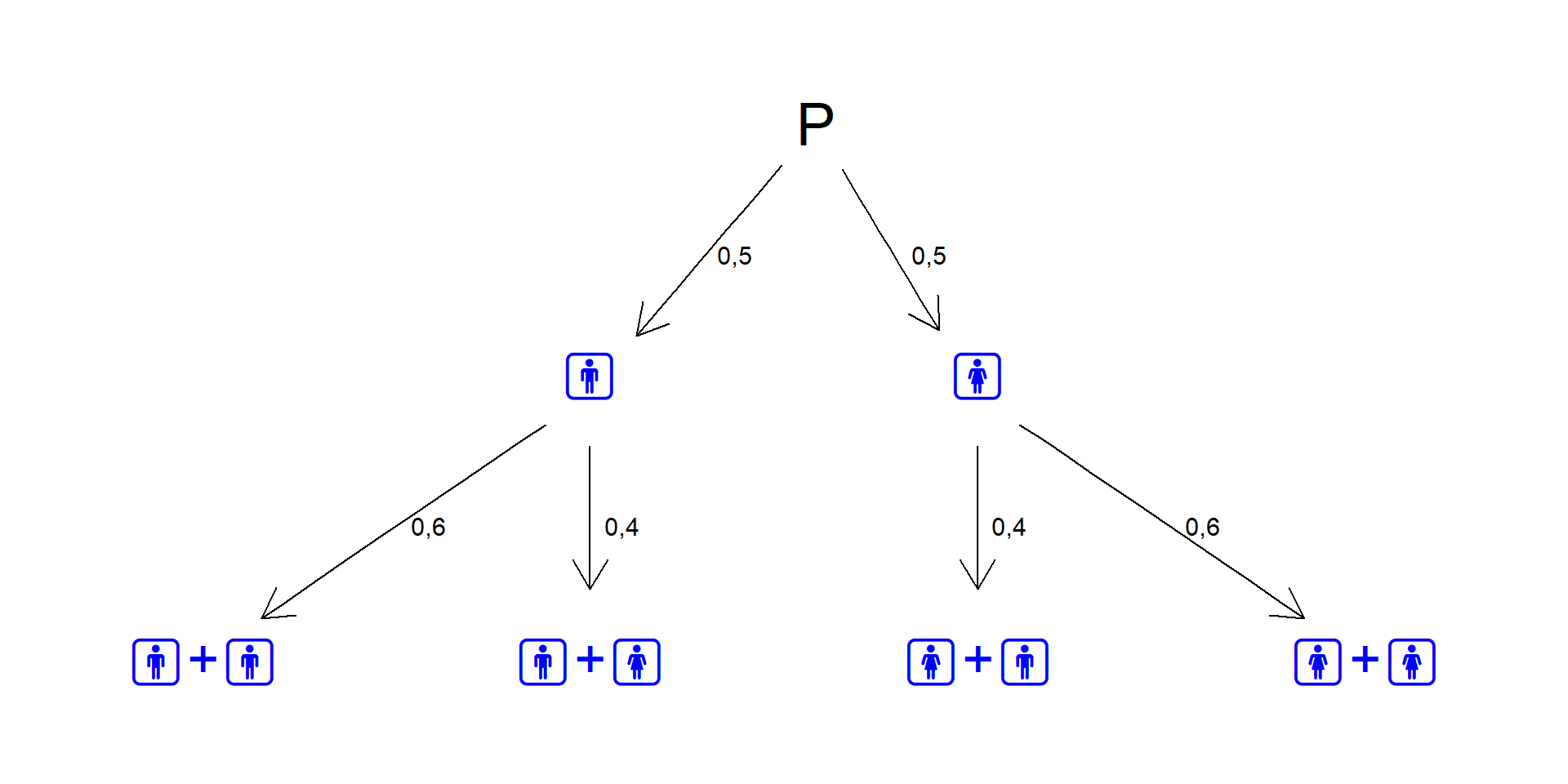 Bei der zweiten Geburt sei die Wahrscheinlichkeit für einen Jungen 60 %, falls die erste Geburt ein Junge wurde: