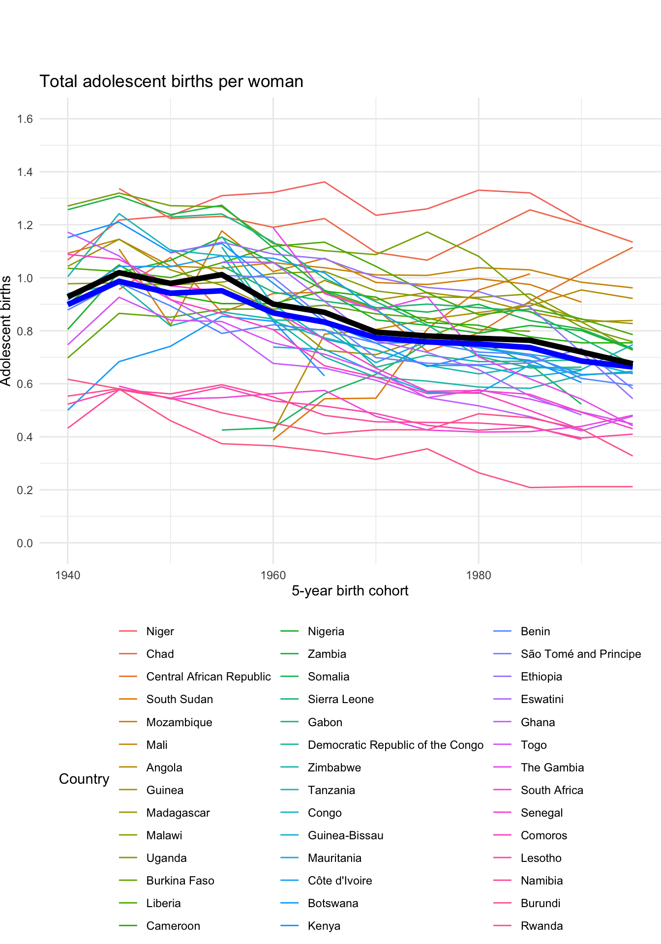 2.43.7 Contribution of adolescent fertility to total fertility by cohort