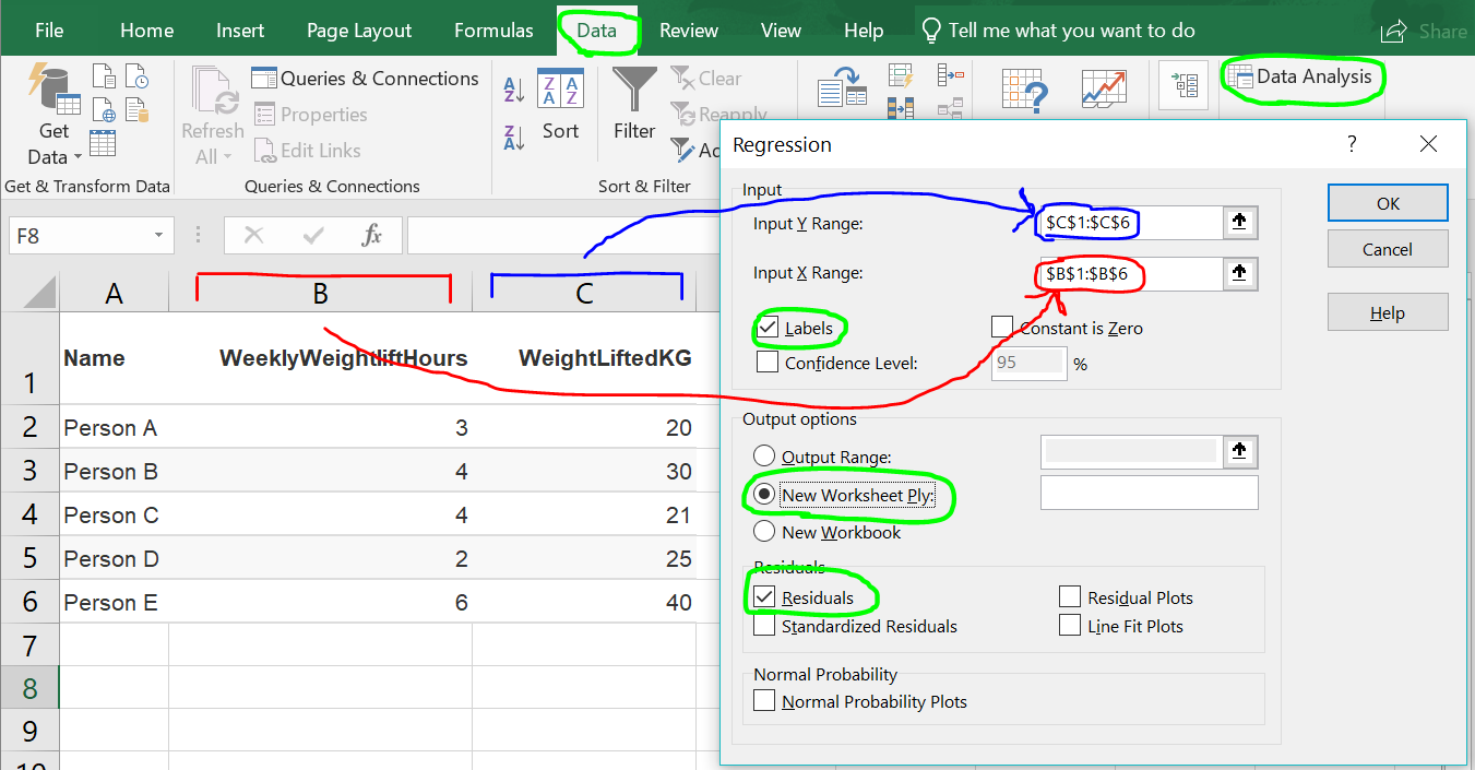 How to configure your OLS linear regression in Excel
