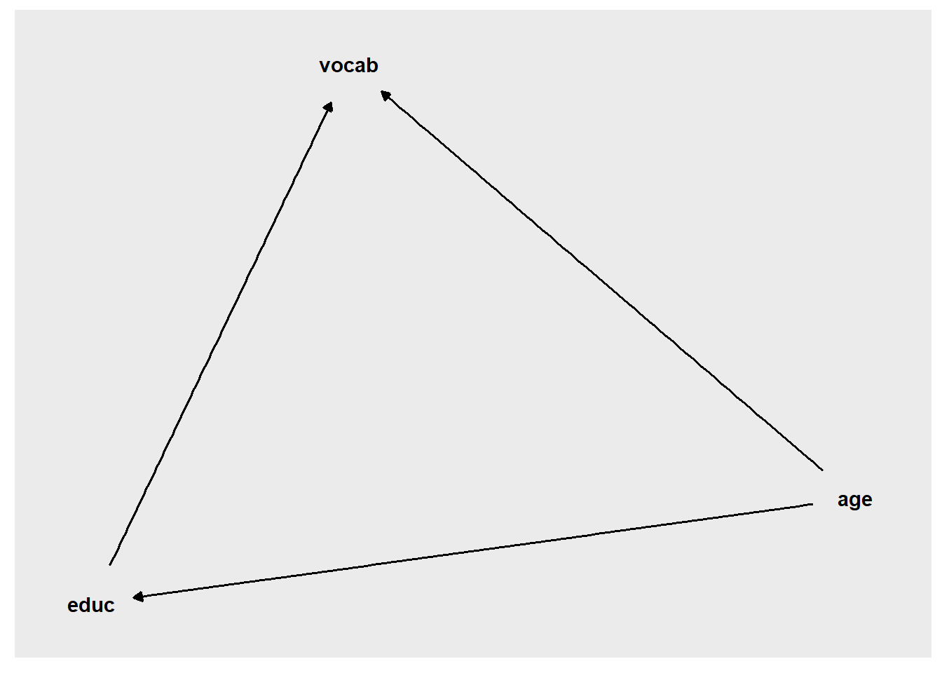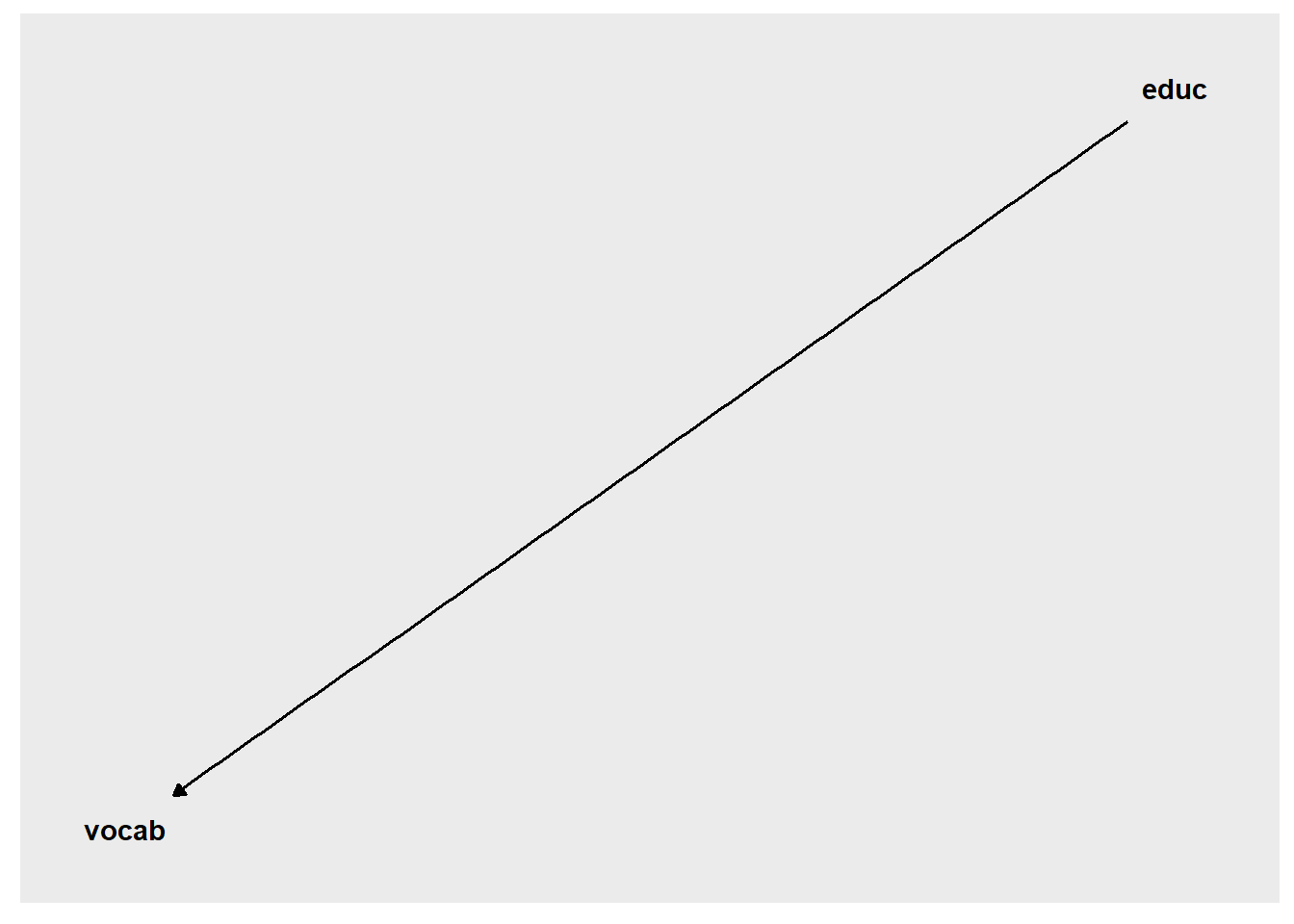 Now we will further explore omitted variable bias. Let’s say we are interested in the effect of education (educ) on vocabulary (vocab) score:
