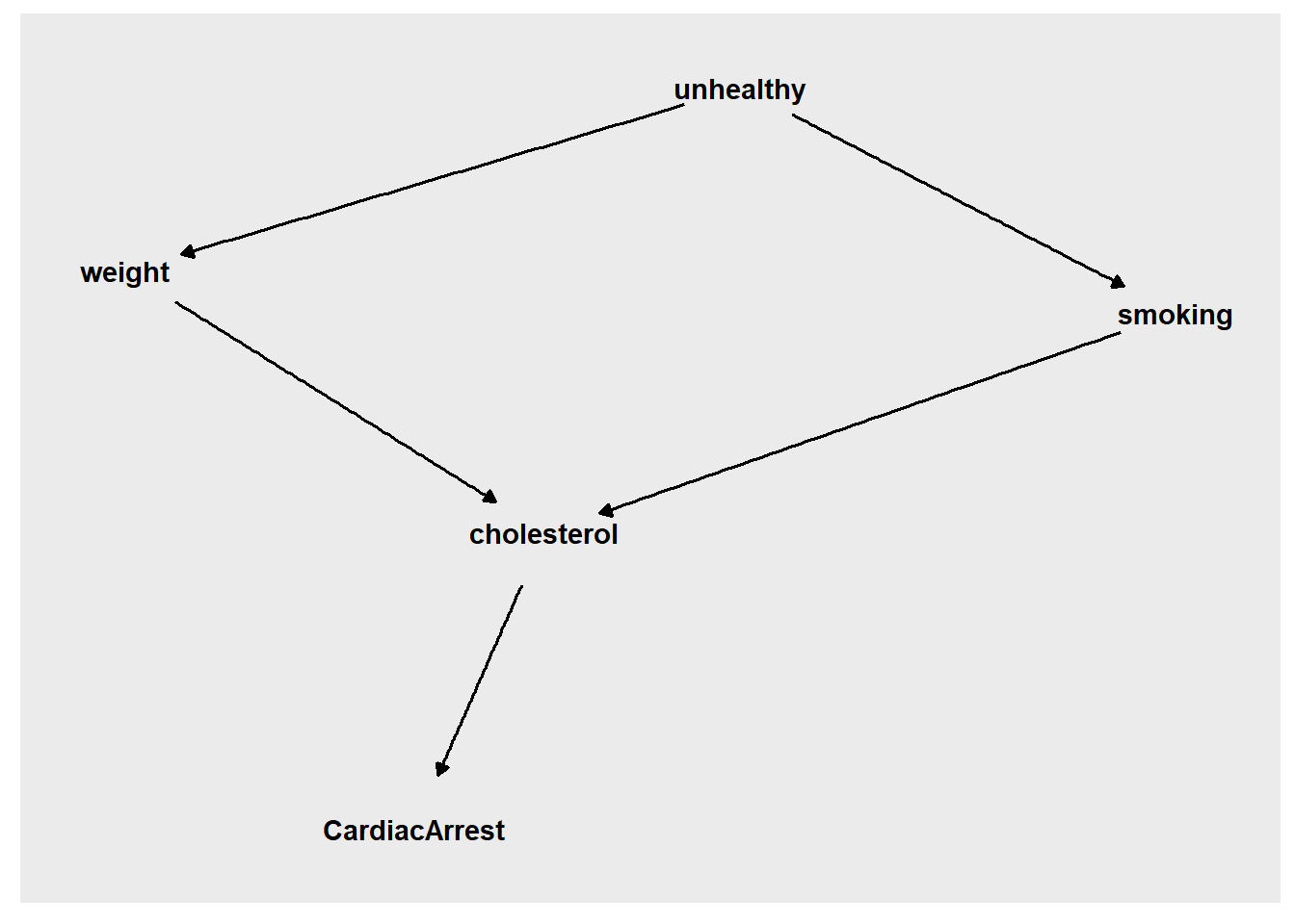 Task 21: In DAG #2, above, if we are interested in the effect of weight on CardiacArrest, does a backdoor path exist between weight and CardiacArrest? If so, what should we do about it, if anything?