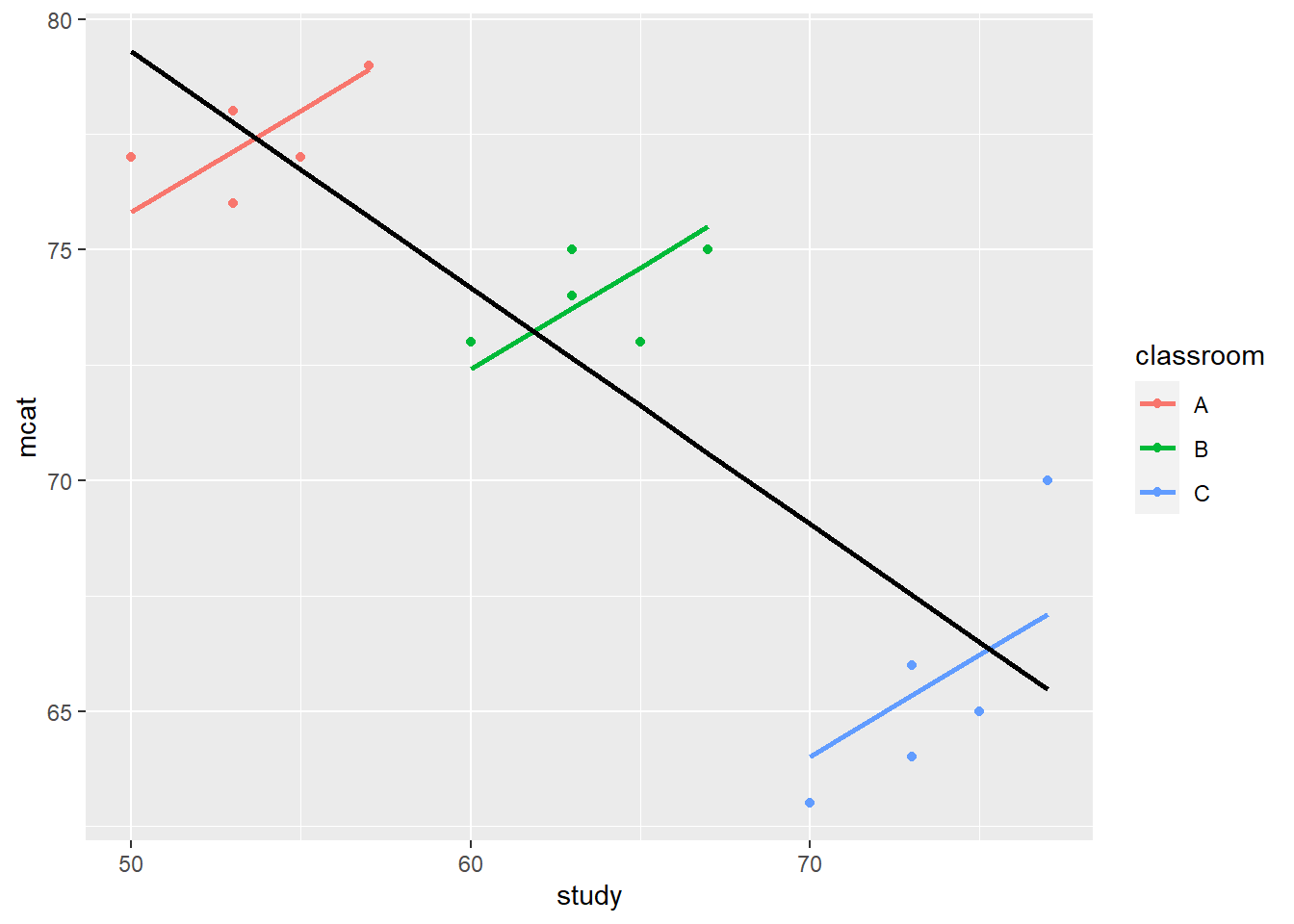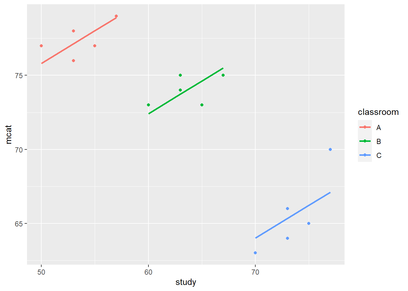 Now we can see that within each classroom, there might actually be a positive trend that we expected.