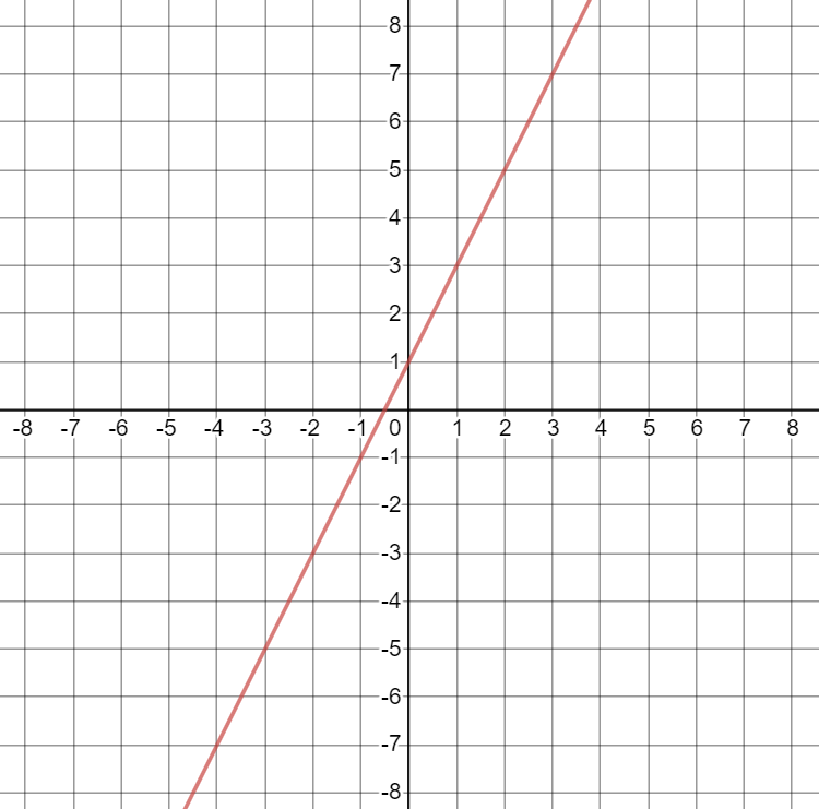 Remember: when x was 3, y was 7. When we increased x to 4, y became 9. y changed from 7 to 9, which means that it increased by 2 when we increased x by 1.↩︎