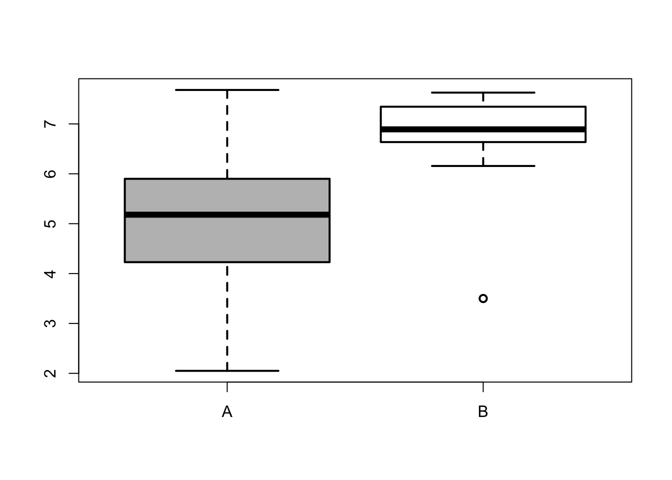Data for groups (A) and (B) are presented in the boxplots. Which of the following is true: