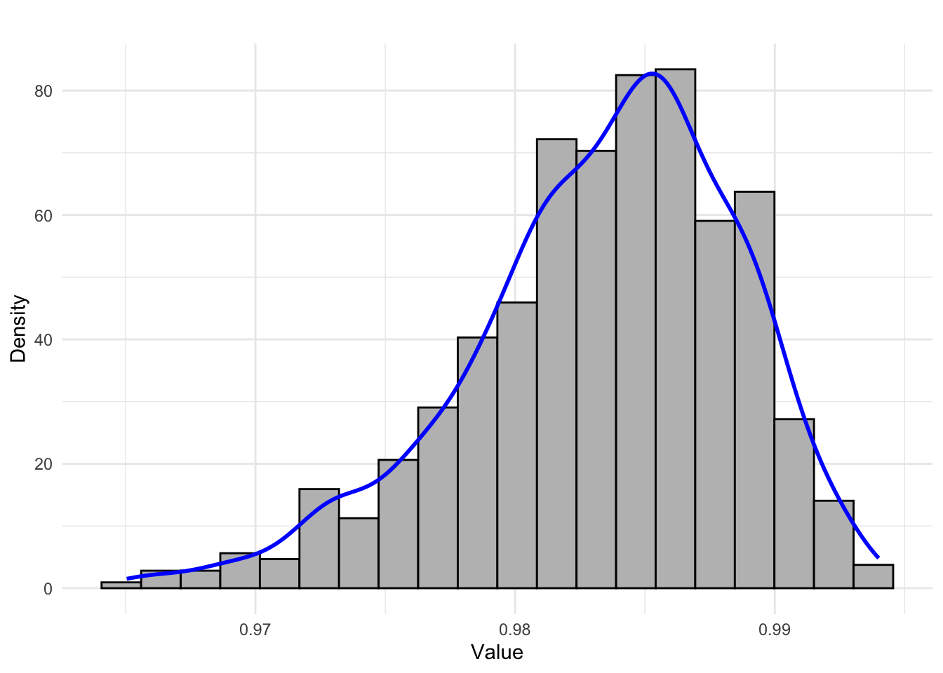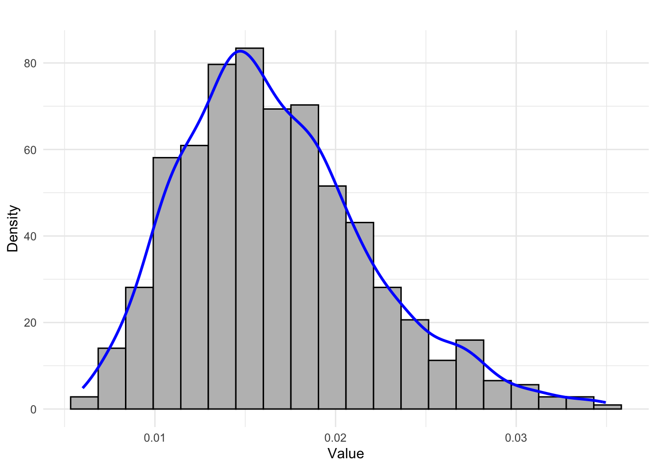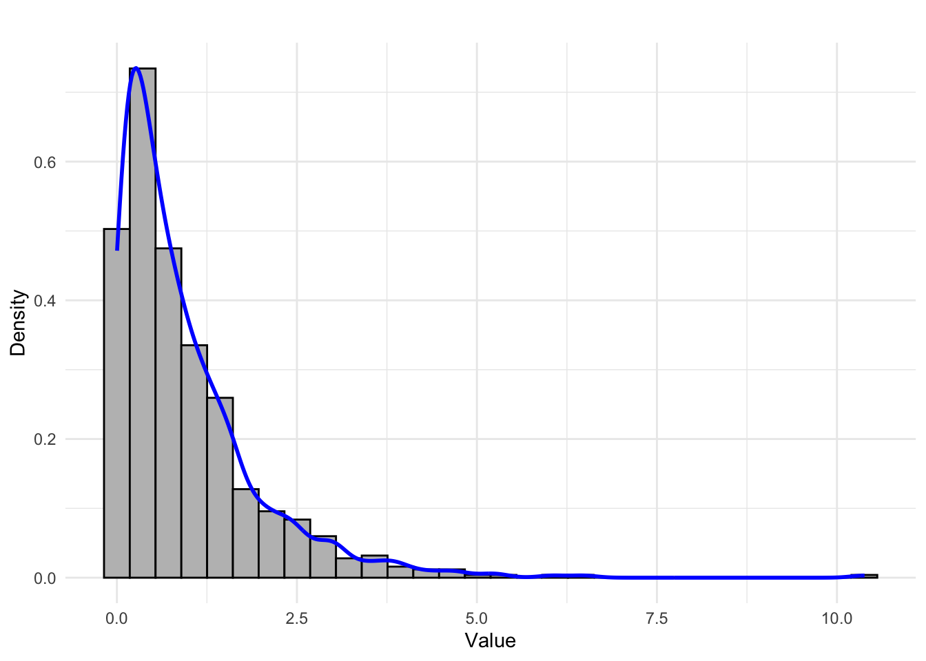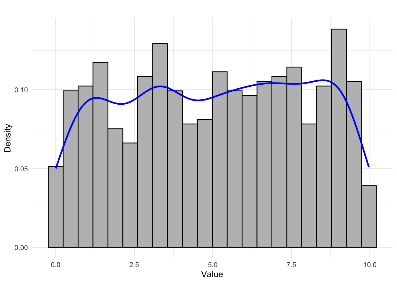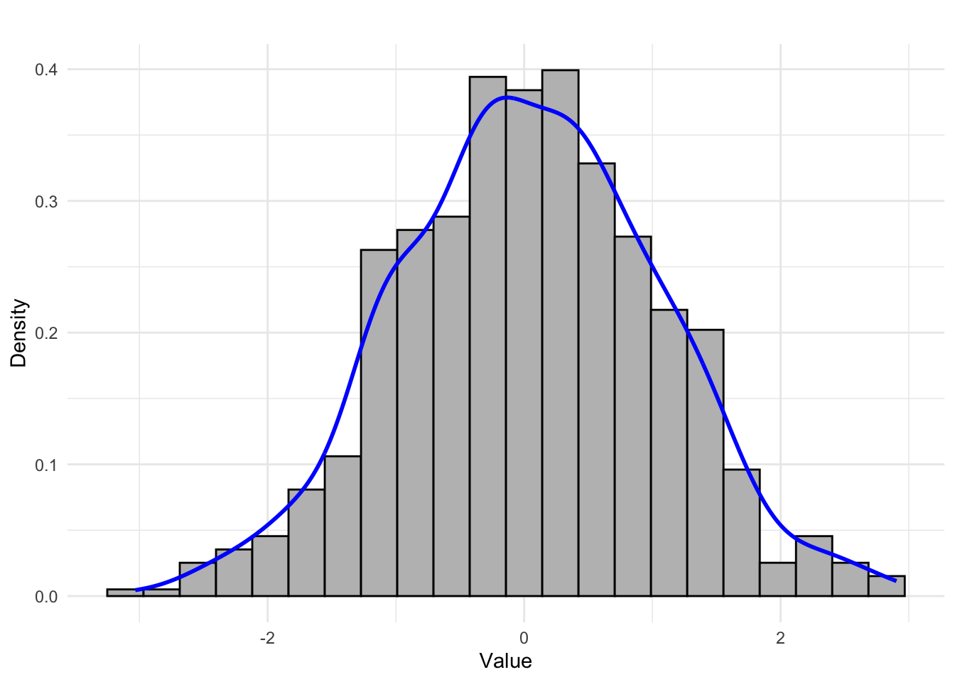 A kernel density estimator is a smooth curve that estimates the probability density function of a continuous variable. Unlike histograms, which are blocky and depend on bin width and placement, kernel density plots provide a continuous and often more visually appealing representation of the distribution.