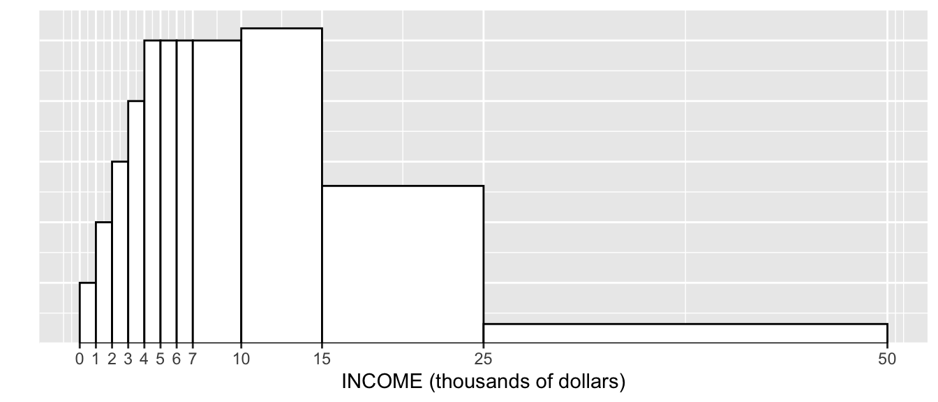 - Were there more families earning between $10k and $11k or between $15k and $16k? Or were the numbers about the same? Make your best guess.