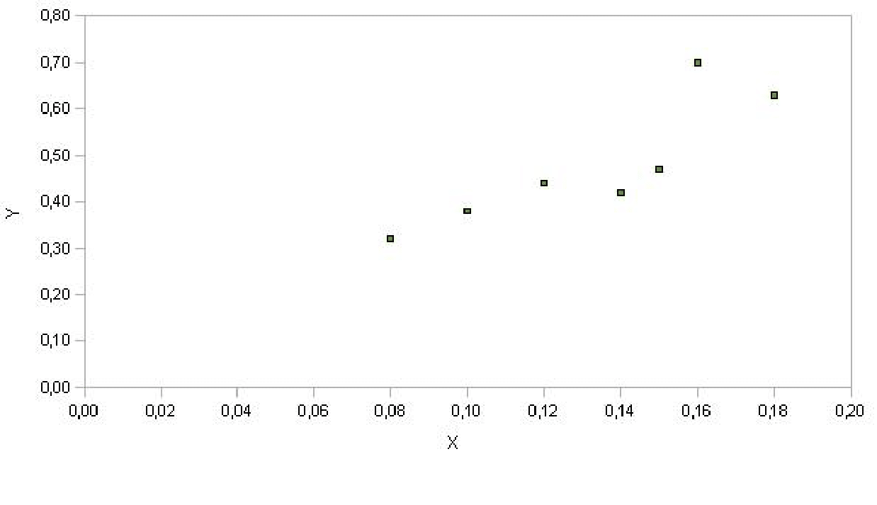 - Si determinino i parametri della retta a minimi quadrati che interpola \(Y\) in funzione di \(X\), si commentino i valori ottenuti;