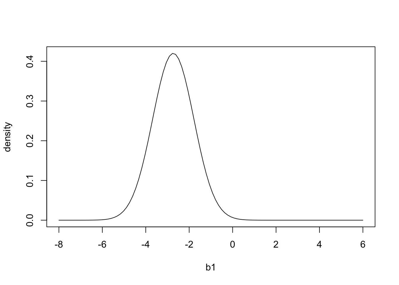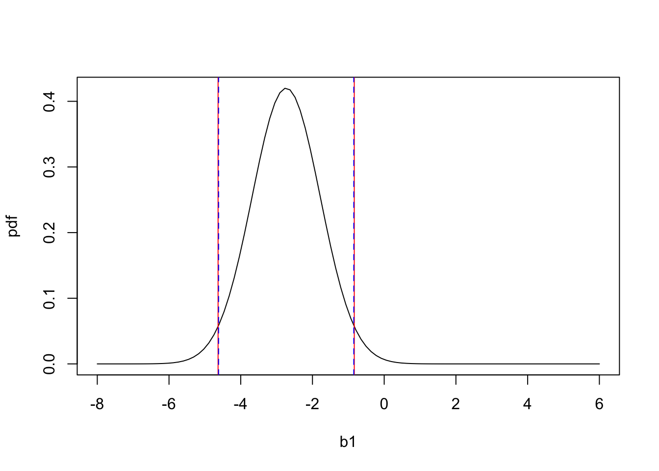 pdf = dnorm(b1,summary(mod)$coefficients[2,1],summary(mod)$coefficients[2,2])