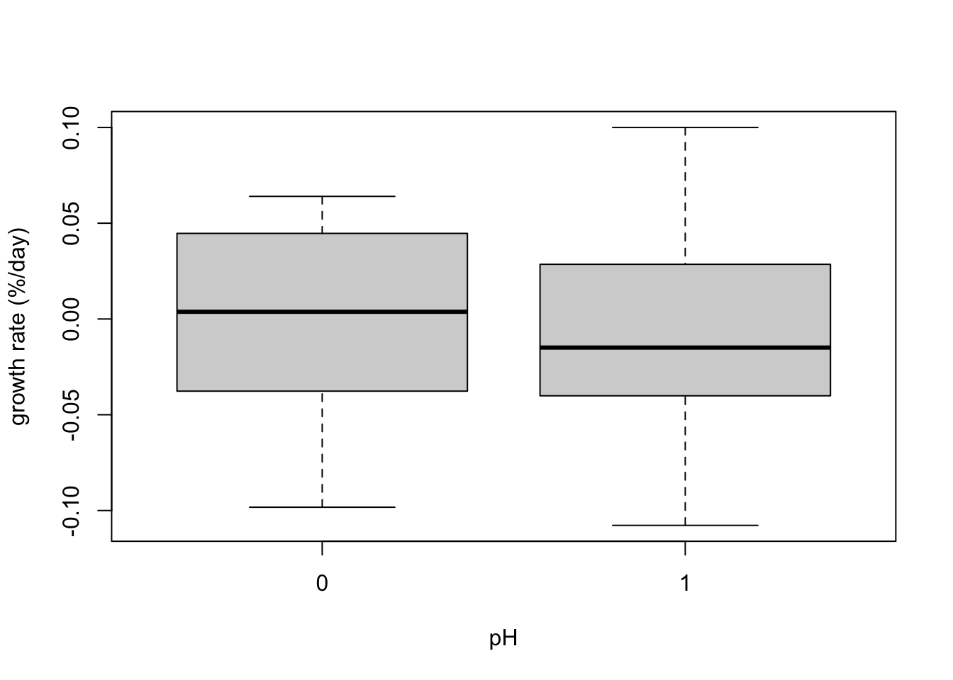 plot(factor(pH),growth,xlab="pH",ylab="growth rate (%/day)")