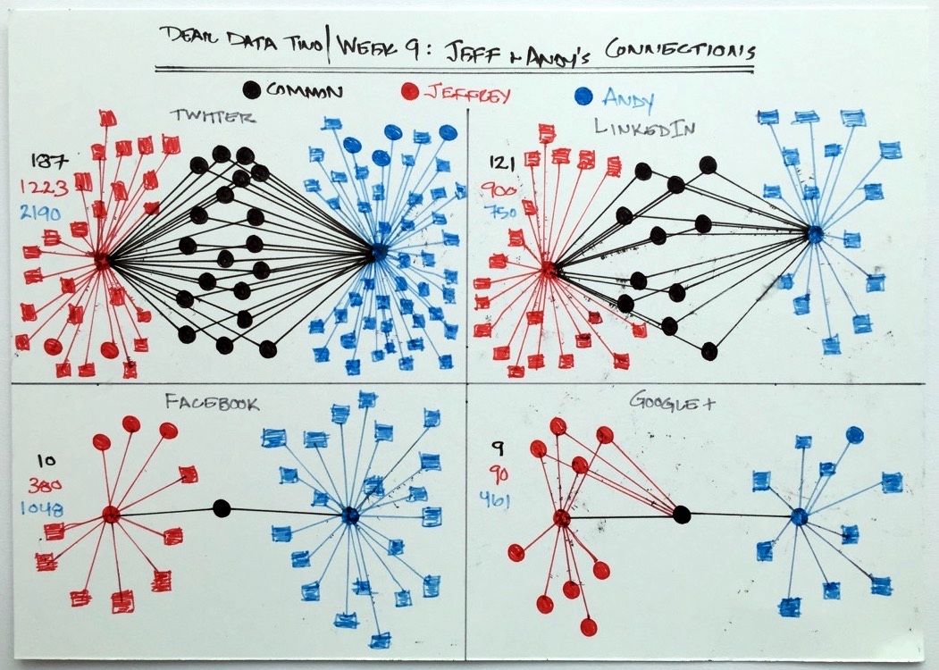 Also, Chen shared several interesting network visualizations from the Dear Data project. I can’t help thinking about artistic representations of networks.