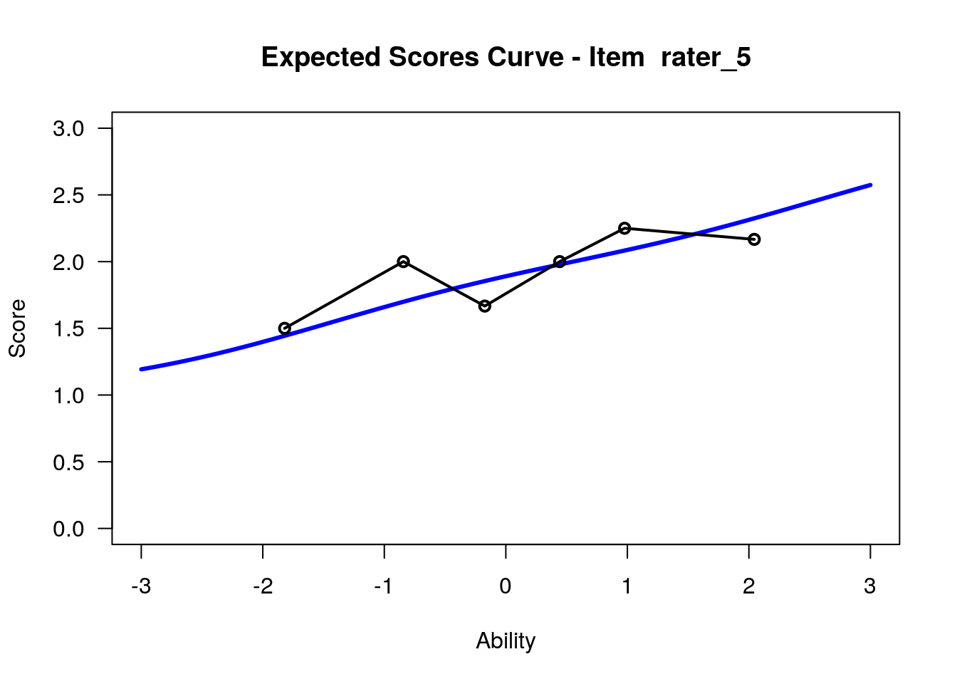 In our analysis, we will treat the 12 raters as 12 polytomous “items” that share the three-category rating scale structure. Raters with high “difficulty” calibrations can be interpreted as severe – these raters assign low scores more often. Raters with low “difficulty” calibrations can be interpreted as lenient – these raters assign high scores more often.